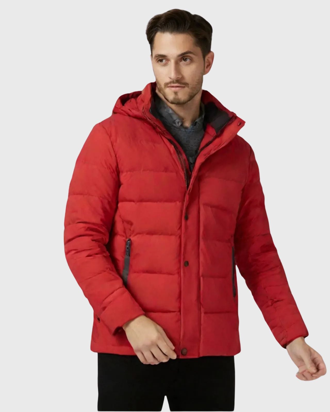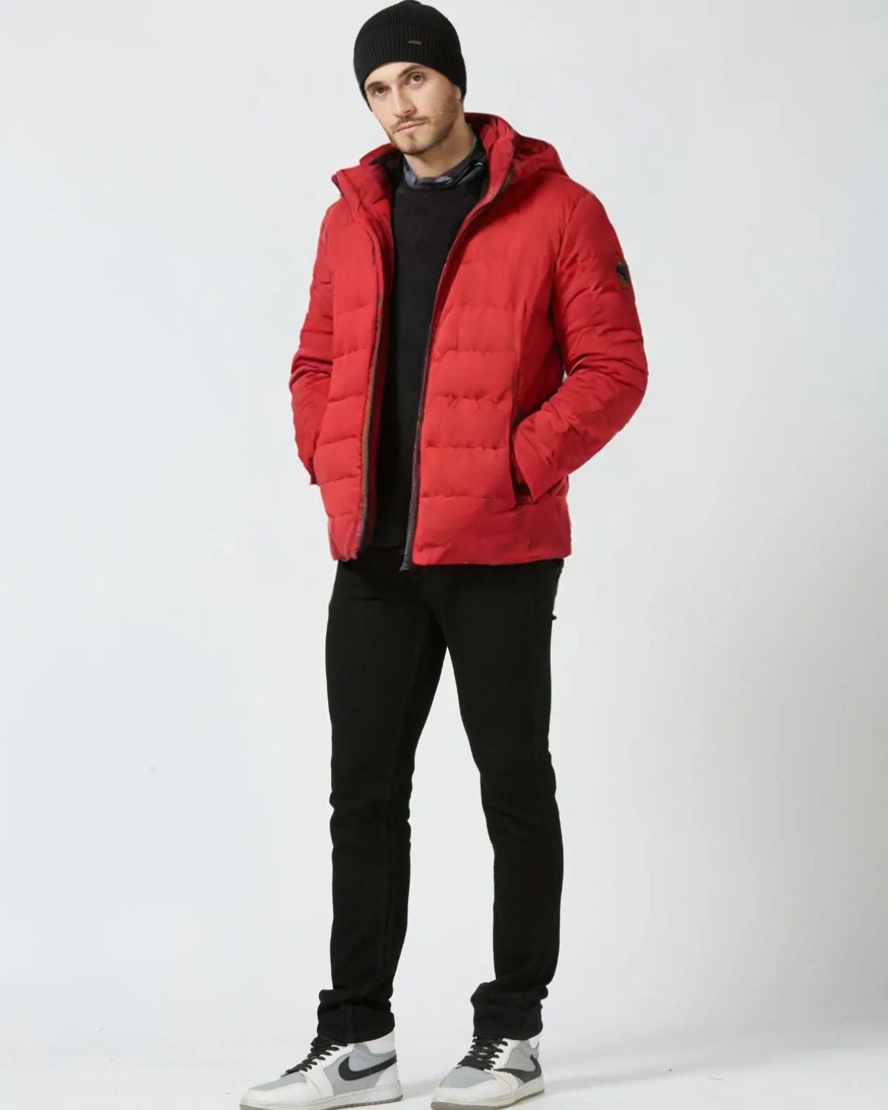 Stay warm and stylish this winter with our Alaskan Fleece Bomber Jacket For Men. Designed with a quilted padded structure, this jacket provides superior insulation without feeling bulky. The adjustable hood and full-zip closure make it perfect for chilly days, while the sleek red color adds a bold fashion statement. Pair it with jeans or joggers for a casual yet refined look.