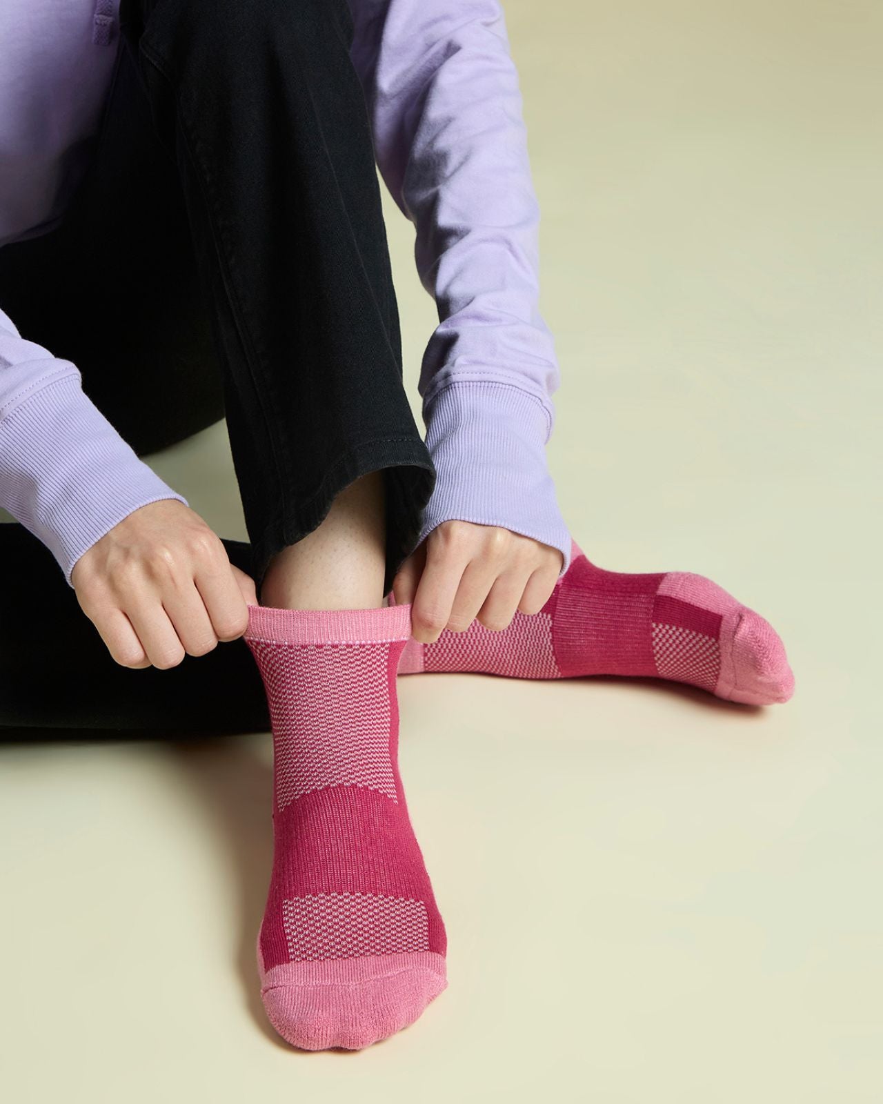 Say goodbye to blisters, cramped toes, and unwanted odors with our women's wool blend full-length technical socks. Designed for comfort and performance, they feature cushioned pressure zones at the heel, breathable mesh panels around the toes, arch support, and a soft ribbed ankle to prevent slipping. Ideal for winter travel and everyday wear, these socks deliver warmth, support, and all-day freshness.