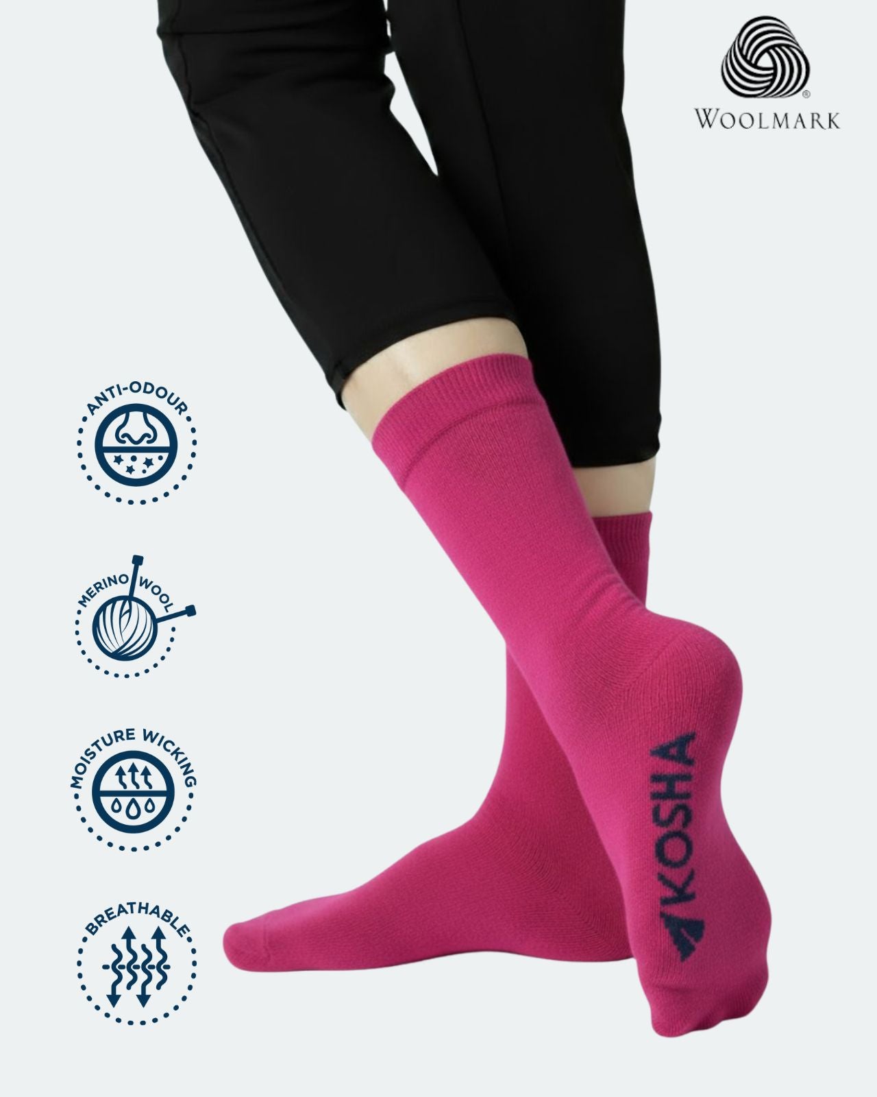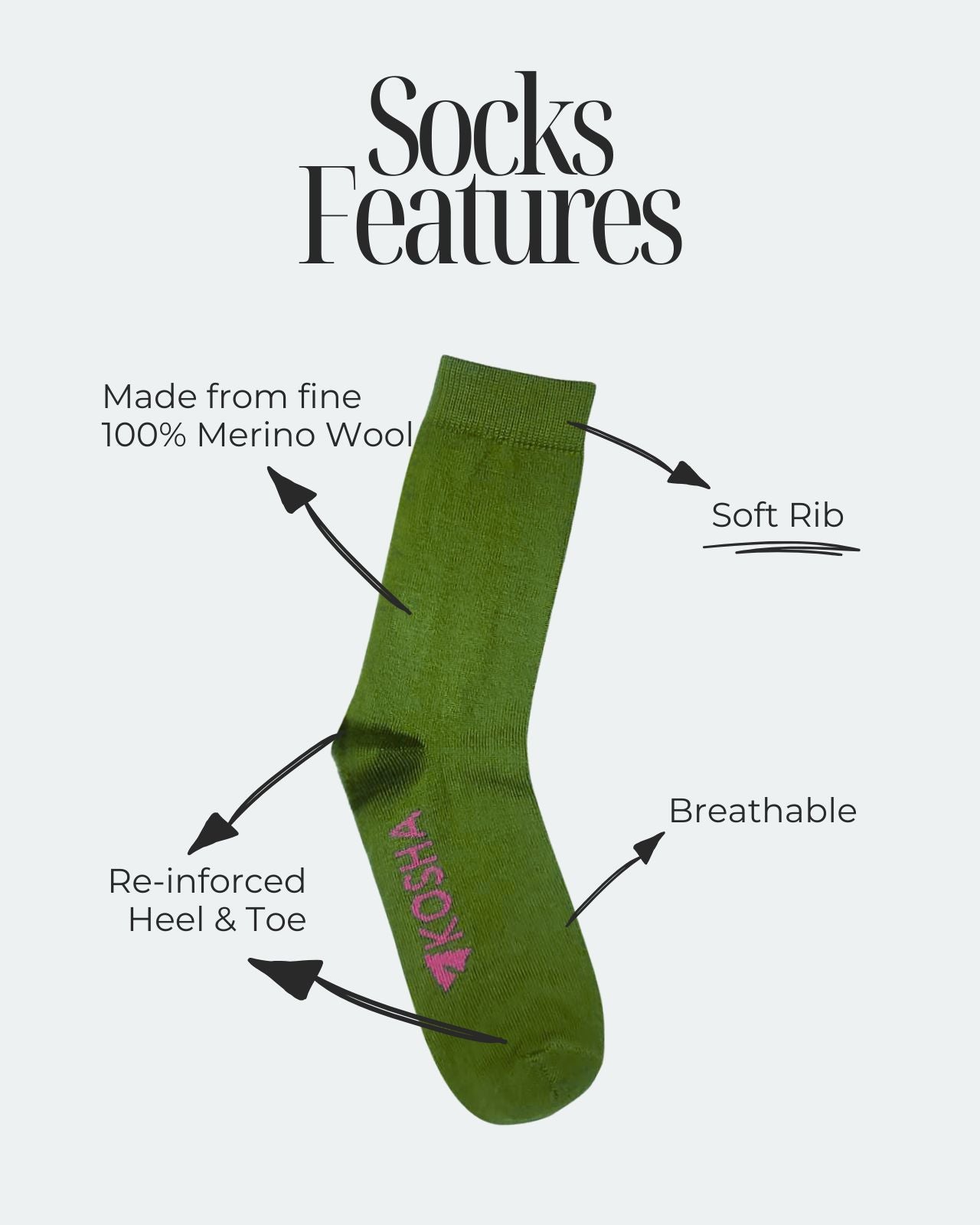 Keep your feet warm and cozy all season long with our classic merino wool socks for women. Crafted from superior quality wool, these temperature-regulating wool socks for women are lightweight, breathable, and naturally moisture-wicking, ensuring your feet stay fresh and odour-free for longer. Perfect as liner socks on winter hikes, they add an extra layer of warmth inside technical footwear, while also doubling up as seamless merino wool ladies’ socks for everyday comfort. Whether you’re at work, pairing them with gloves, beanies, or mufflers, or slipping into them for winter workouts, strolls, or even winding down at night, these soft merino crew socks for women deliver unmatched comfort. Compact and easy to pack, they also make the perfect travel-friendly wool socks for women, ready to support every adventure.