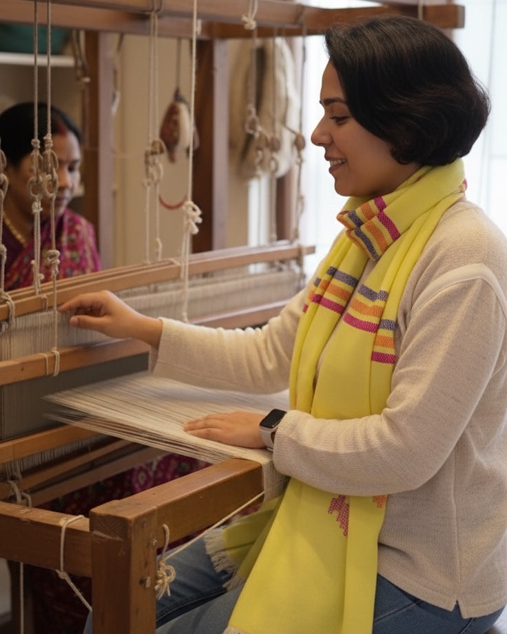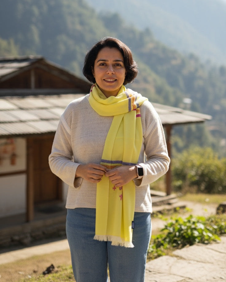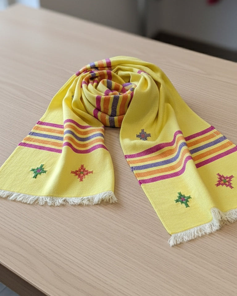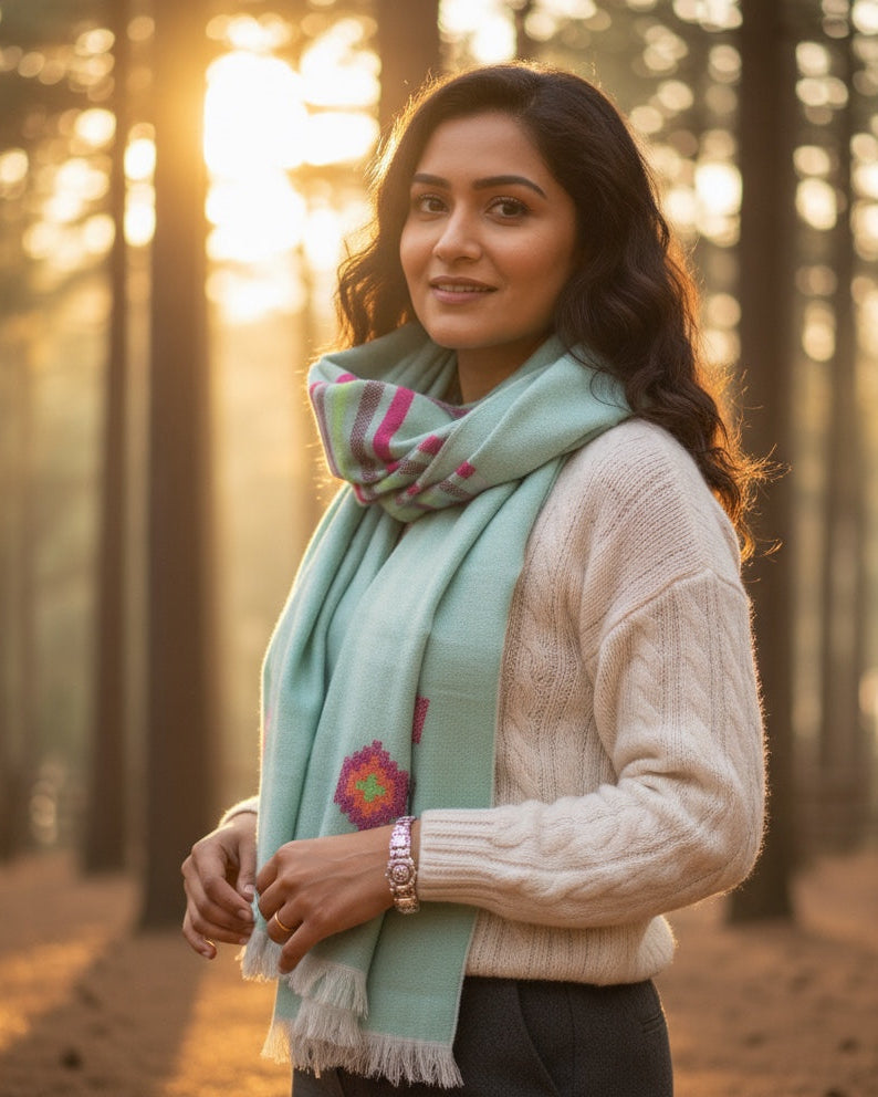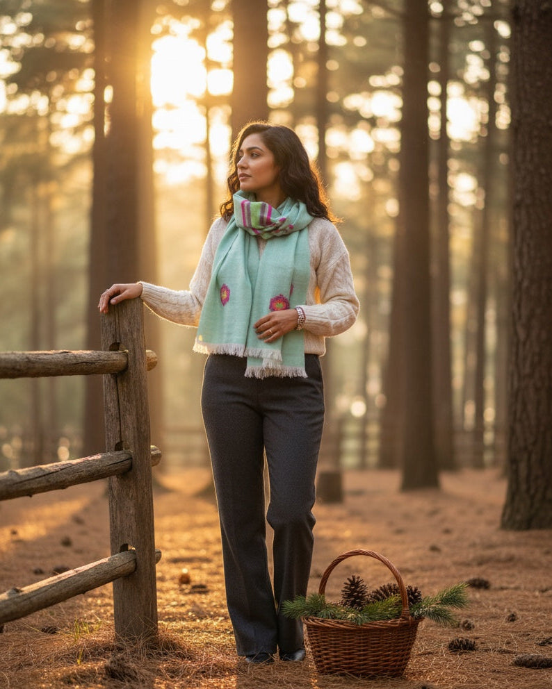 This hand made woollen stole is an exclusive piece for the discerning woman. It provides superior warmth for those chilly evenings. The exquisite fine sheep wool winter stole elevates every outfit, adding joy to your holiday.