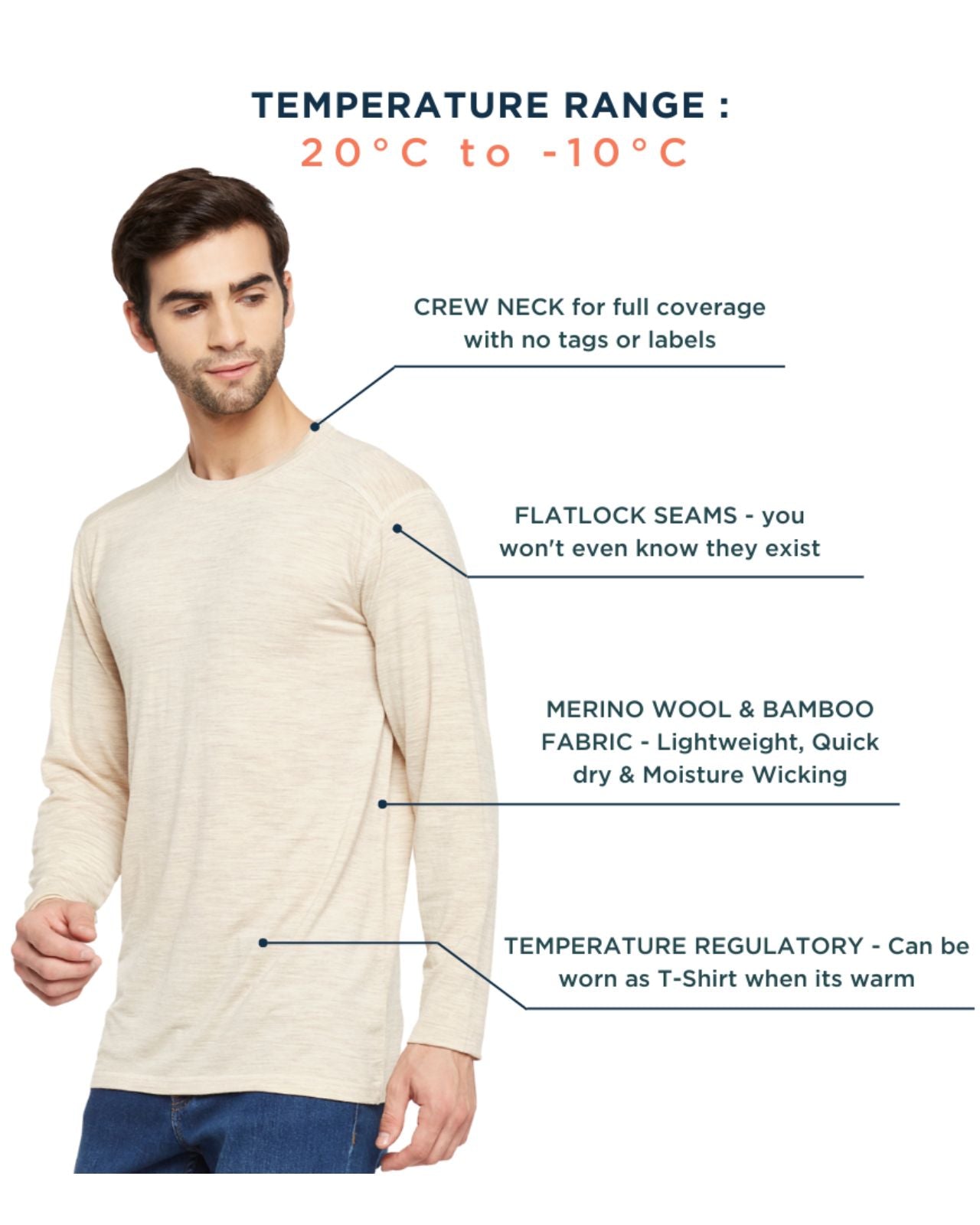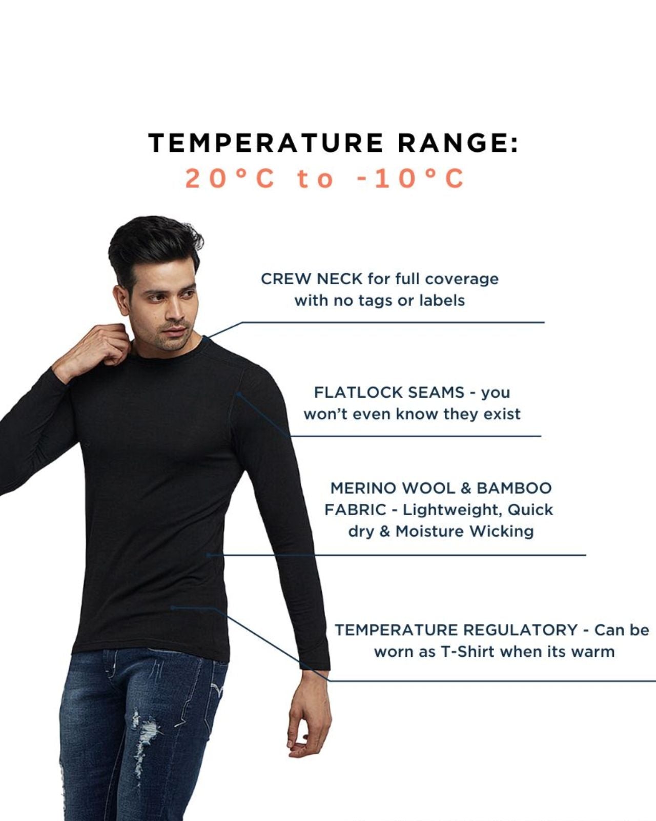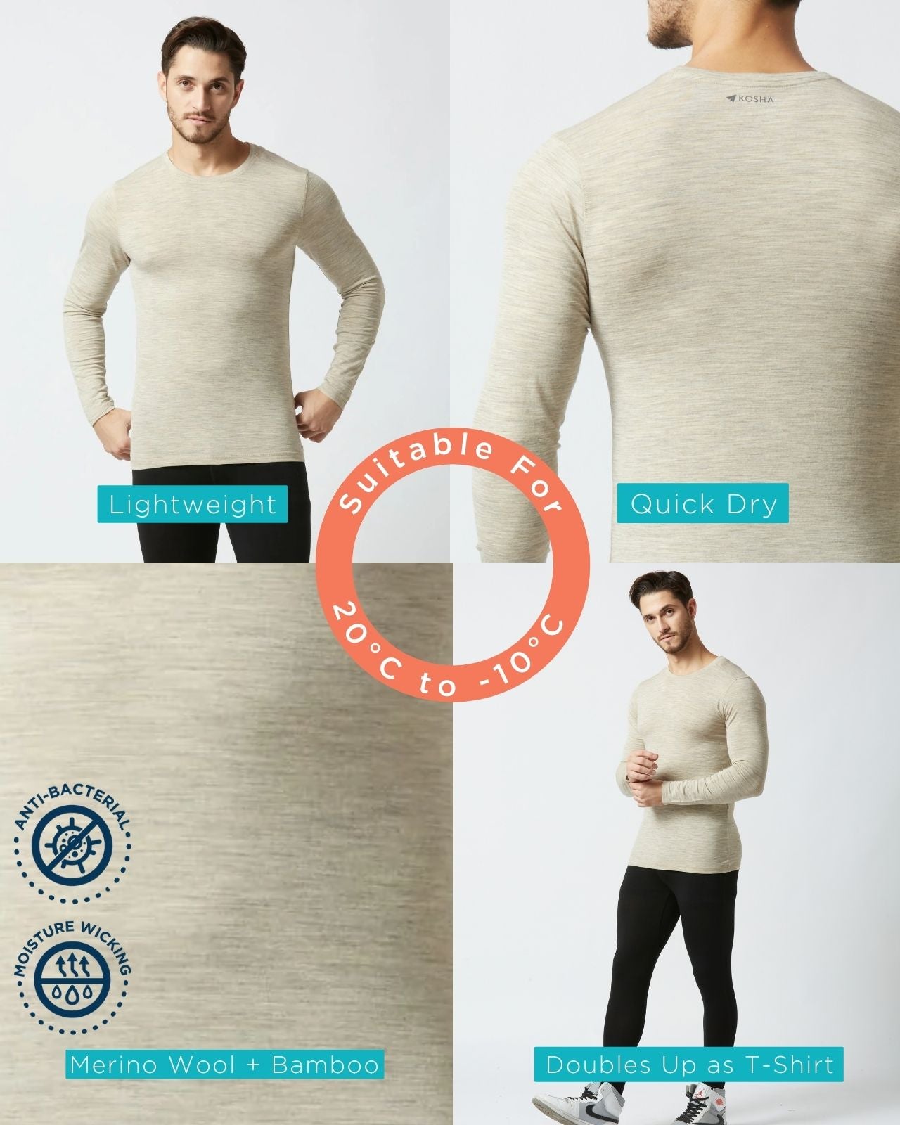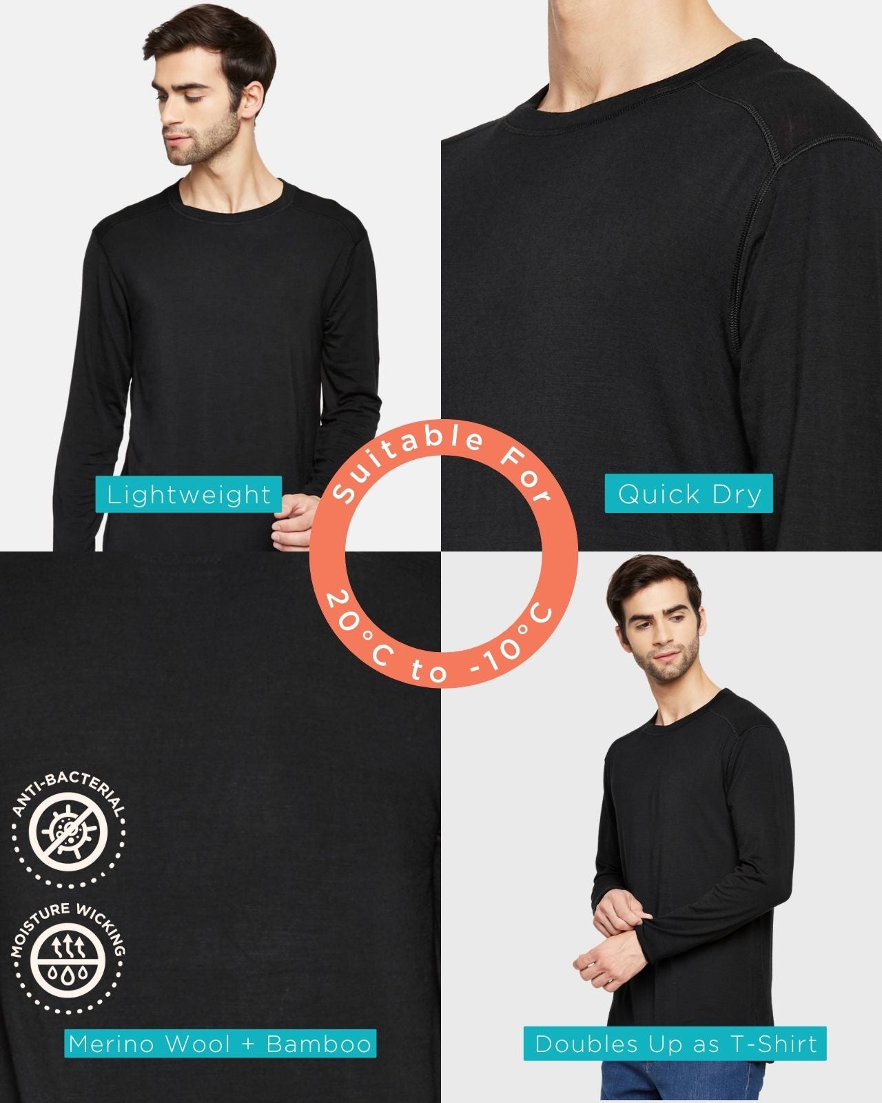 Soft on your skin and light as a feather, this Merino wool thermal top is blended with a sustainable bamboo wool blend for the perfect balance of comfort and performance. Designed as a full sleeve base layer, it offers lightweight warmth while staying breathable. The fabric’s natural properties ensure odor-free thermals and moisture-wicking thermal comfort, making it ideal for workouts, travel, or everyday layering. Stay warm, stay fresh, and keep exploring.