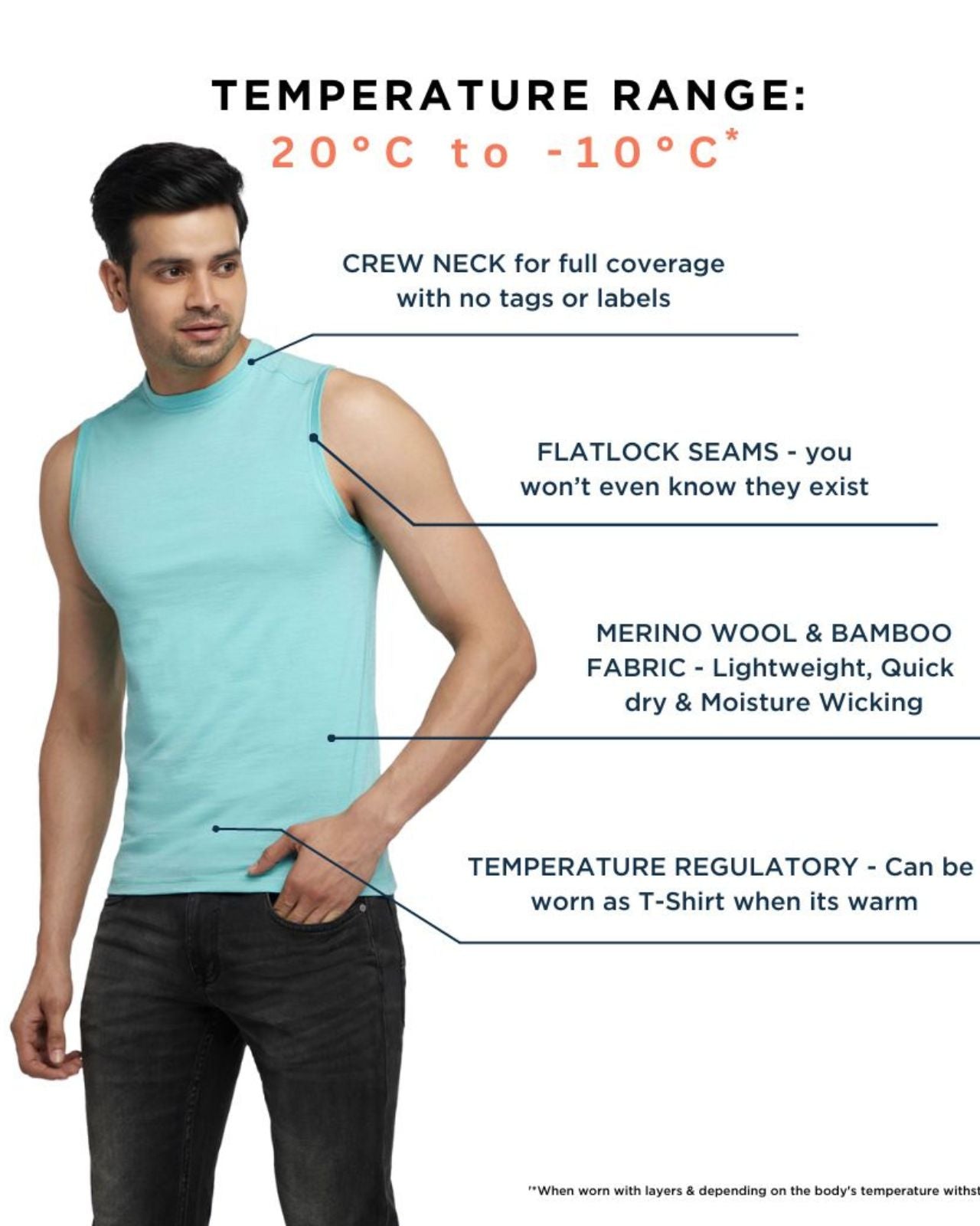 Soft for your skin. Light as a Feather. Made of Merino Wool and Bamboo Wool. 100% Warmth with temperature-regulating properties. Fitted for your office mornings. Slip into Merino Wool Thermals. Explore adventures for the explorer in you.