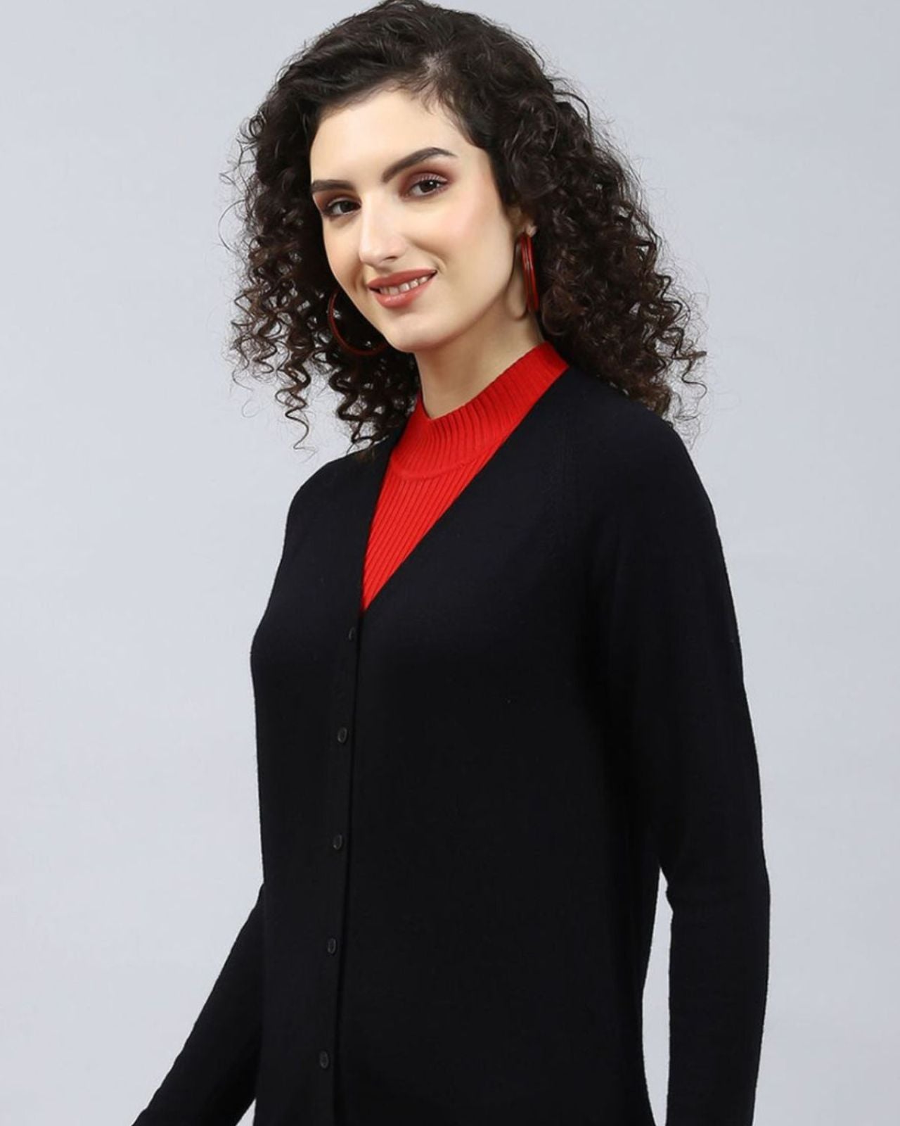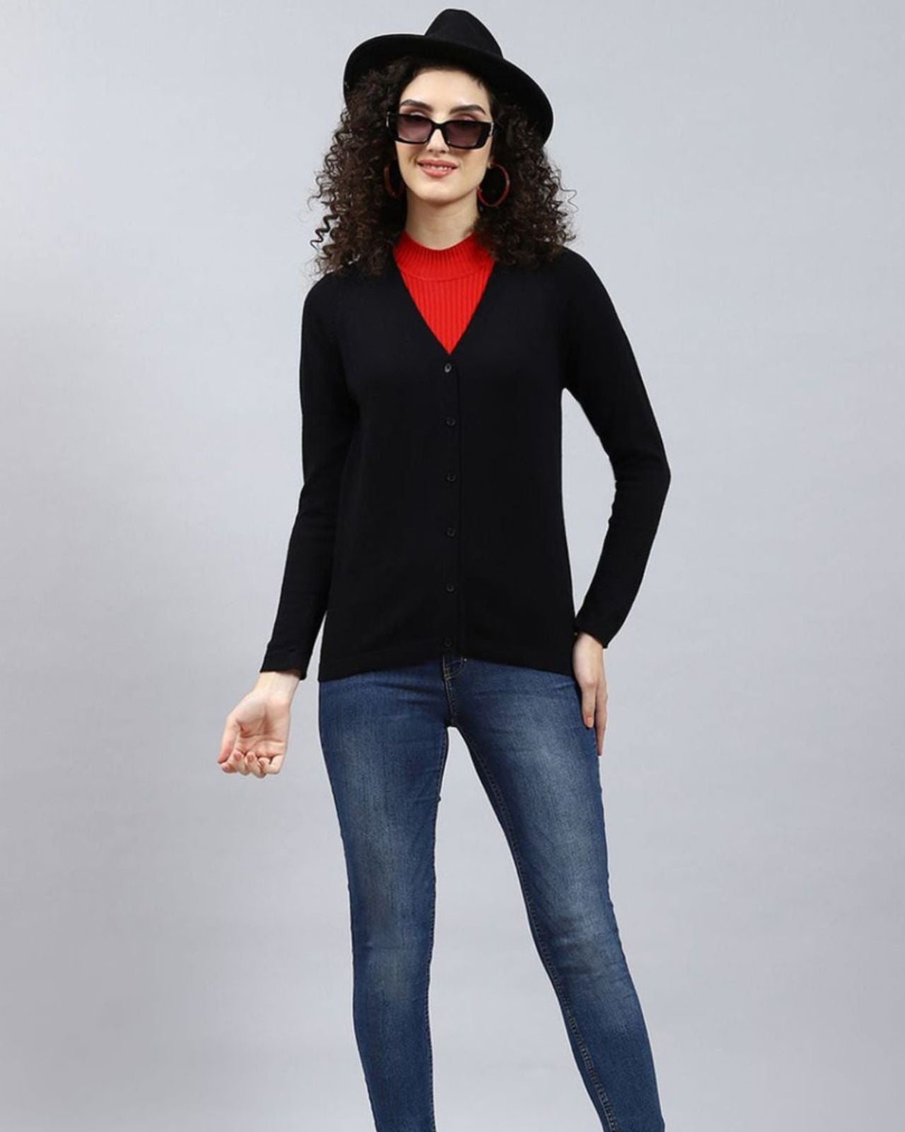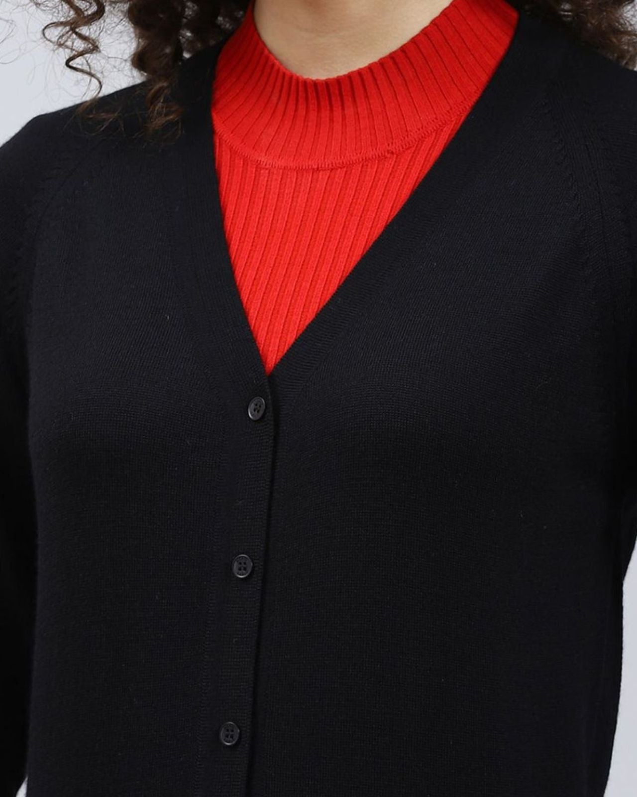 Wrap yourself in luxury with our Women's Merino Wool Cardigan. Crafted from 100% Merino Wool, this full-sleeved cardigan is perfect for any occasion. Featuring a traditional design with round buttons and a soft ribbed knit pattern, it effortlessly combines style and comfort. Wear it over a formal shirt for a polished look or pair it with a casual t-shirt and denim for a laid-back vibe. Whether for professional meetings or cozy evenings, this cardigan is a versatile addition to your wardrobe.