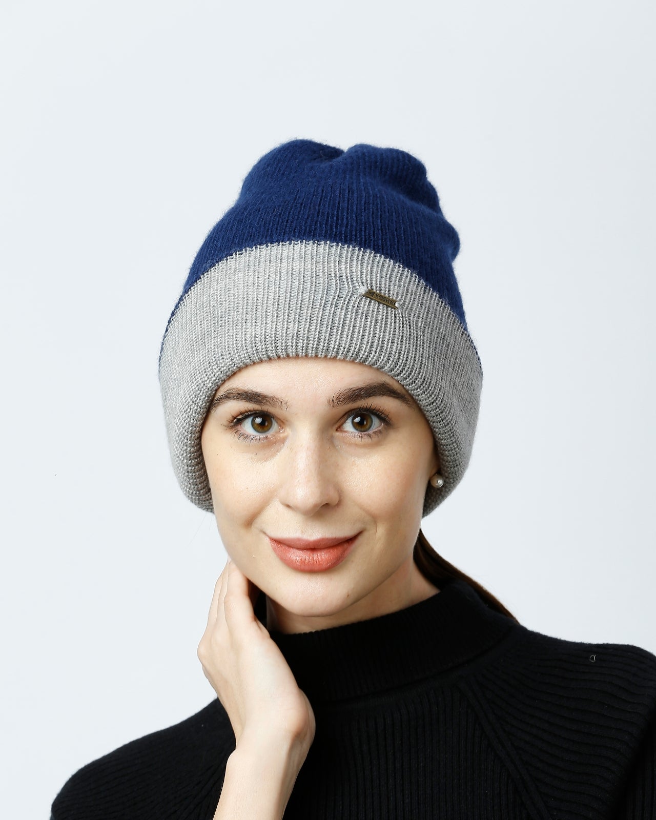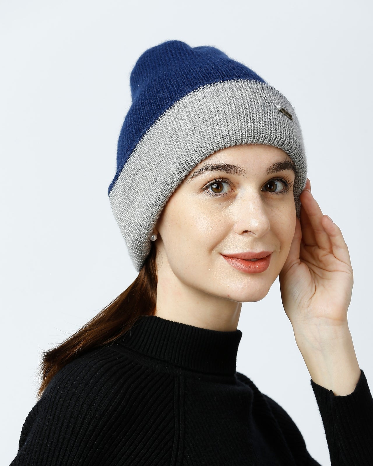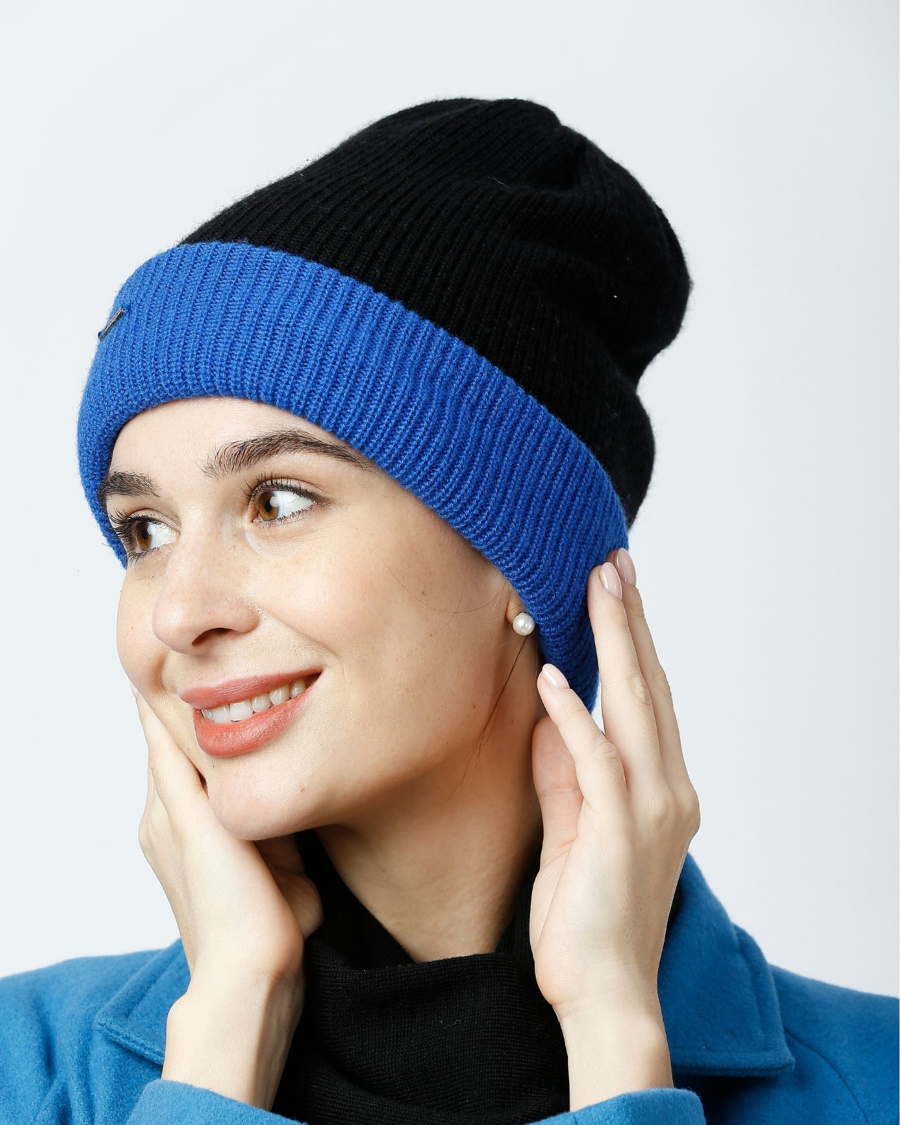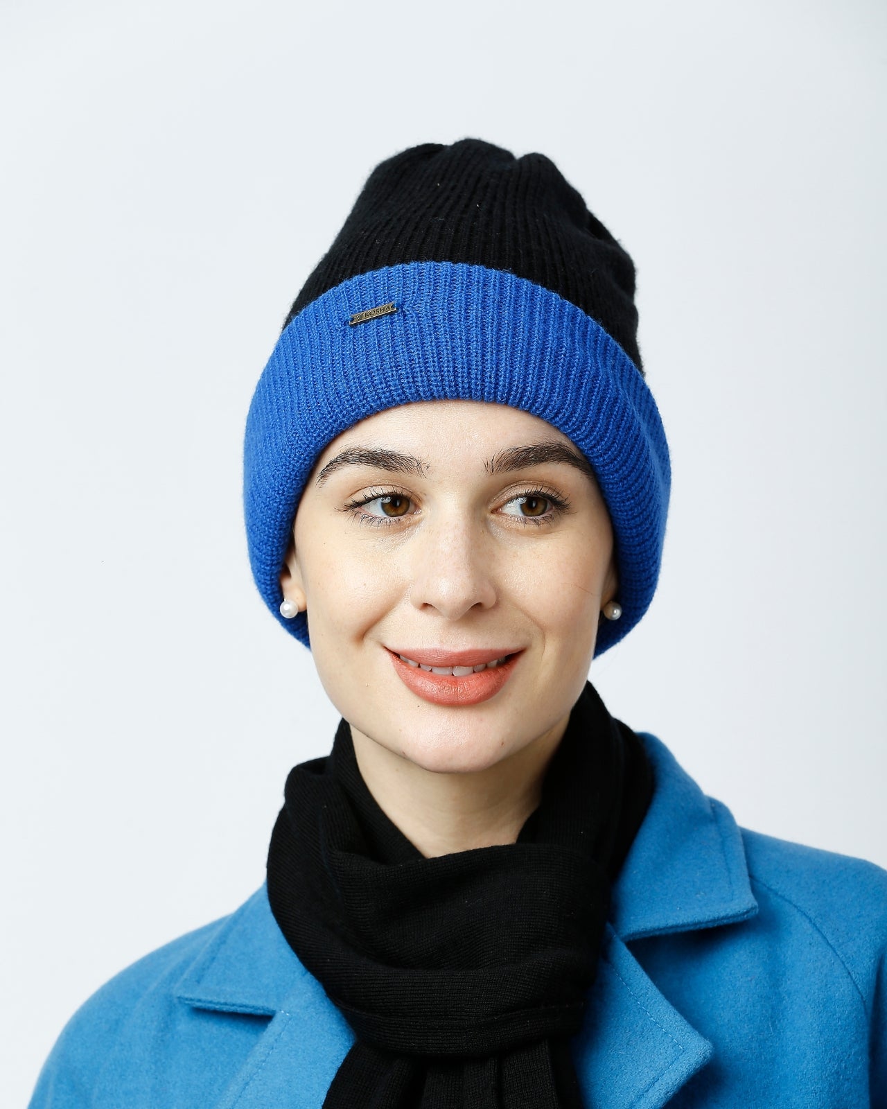 Soft, Stylish & Double Layered wool beanie. It’s a women’s merino wool reversible beanie that’s adjustable in length. It has a stylish metal applique/tag at the side. This double-layer merino beanie for women is not only a warm yet breathable reversible beanie but also an incredibly travel-friendly reversible beanie. Now look stylish by pairing it with Kosha’s Black Solid Puffer Jacket along with denim. With its two-tone design, it's the perfect stylish two-tone merino beanie for women to complement any outfit while keeping you cozy.