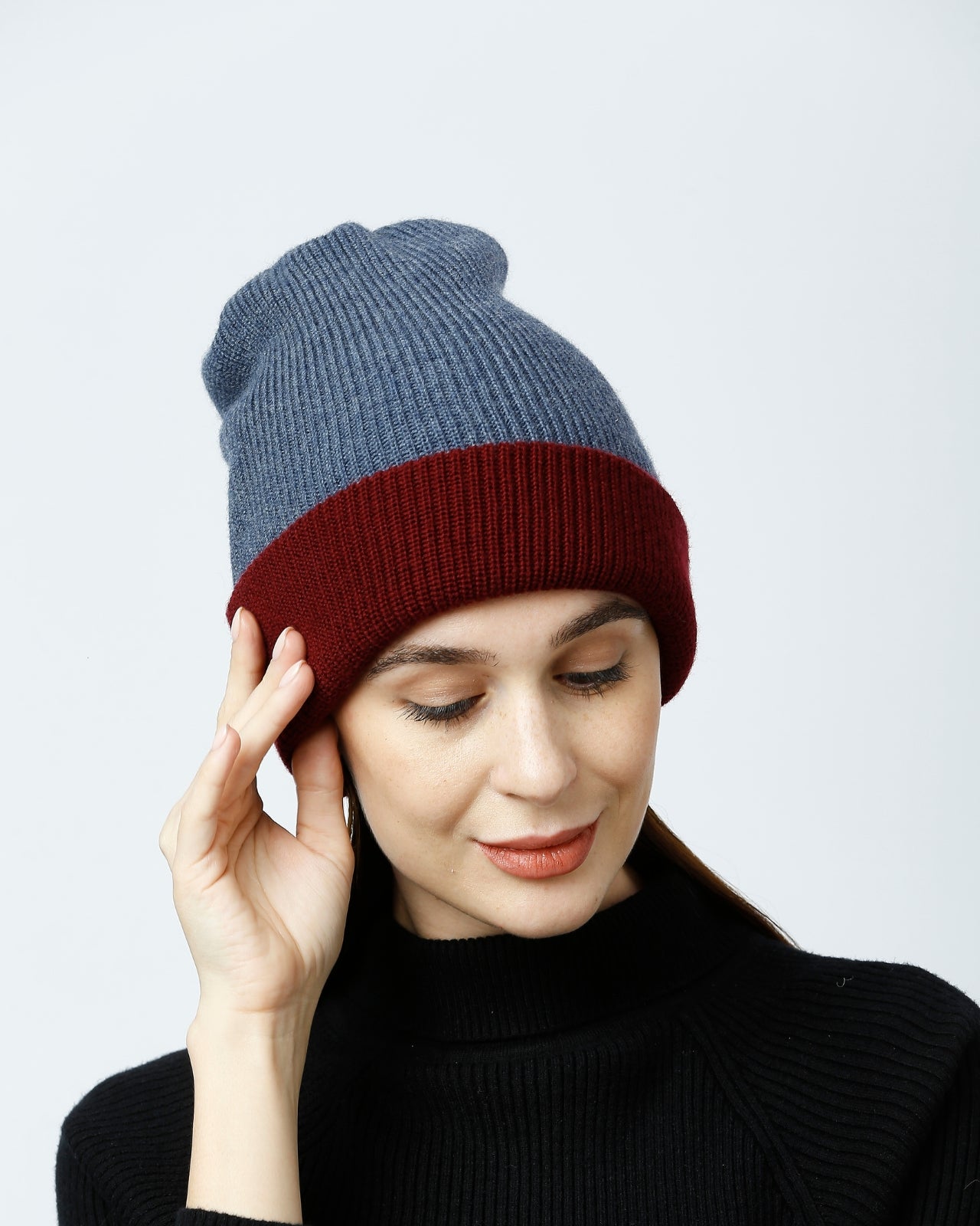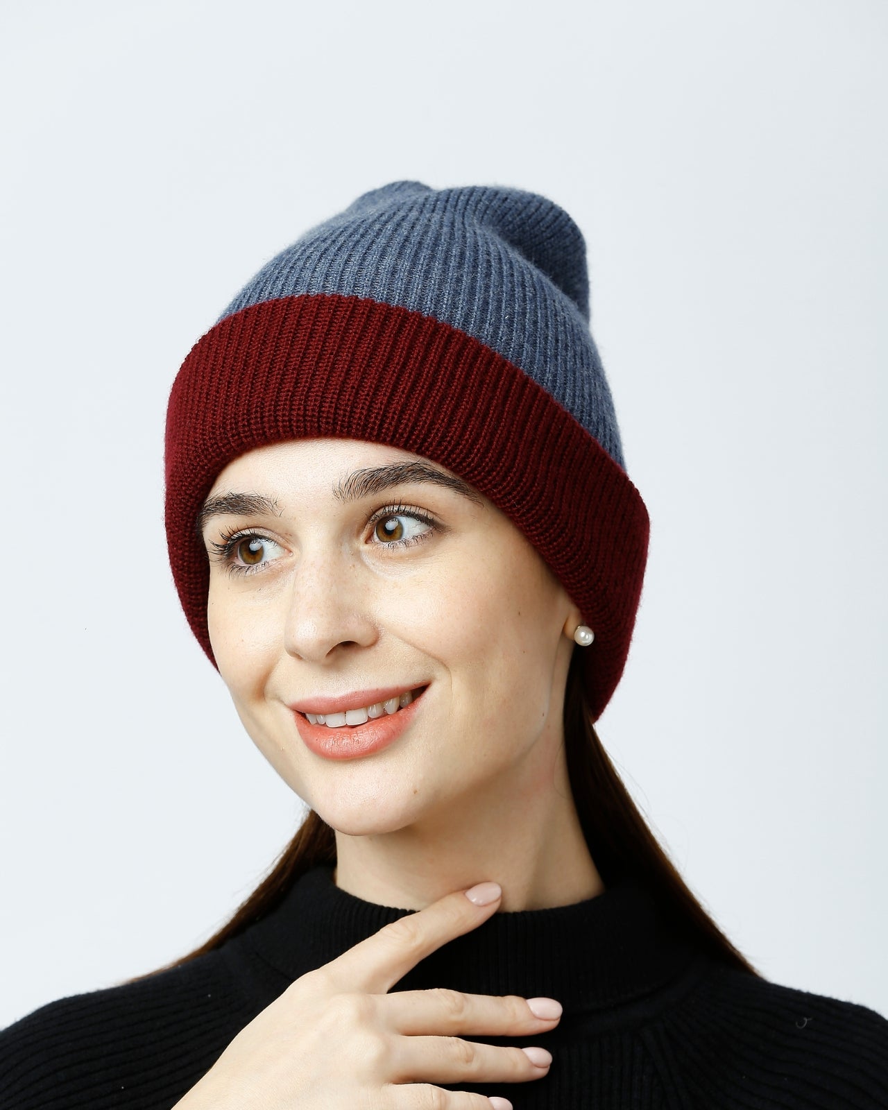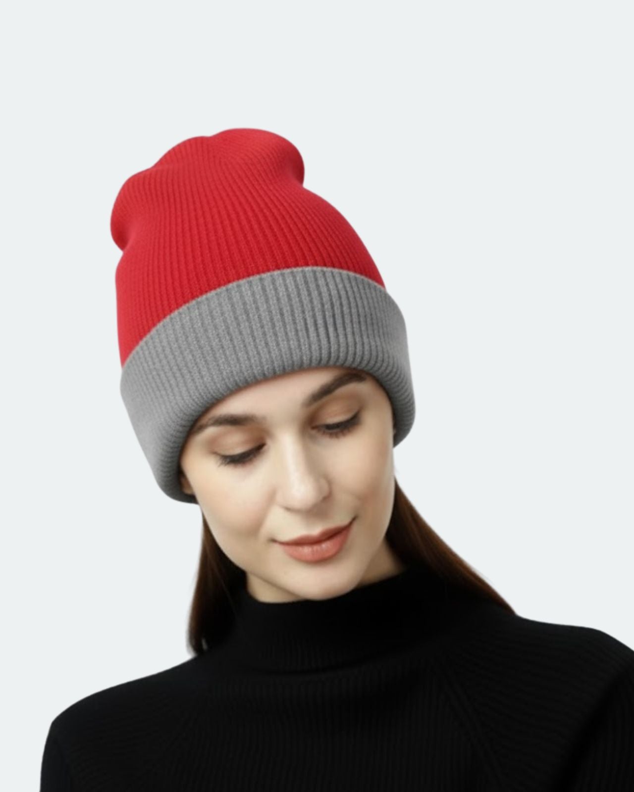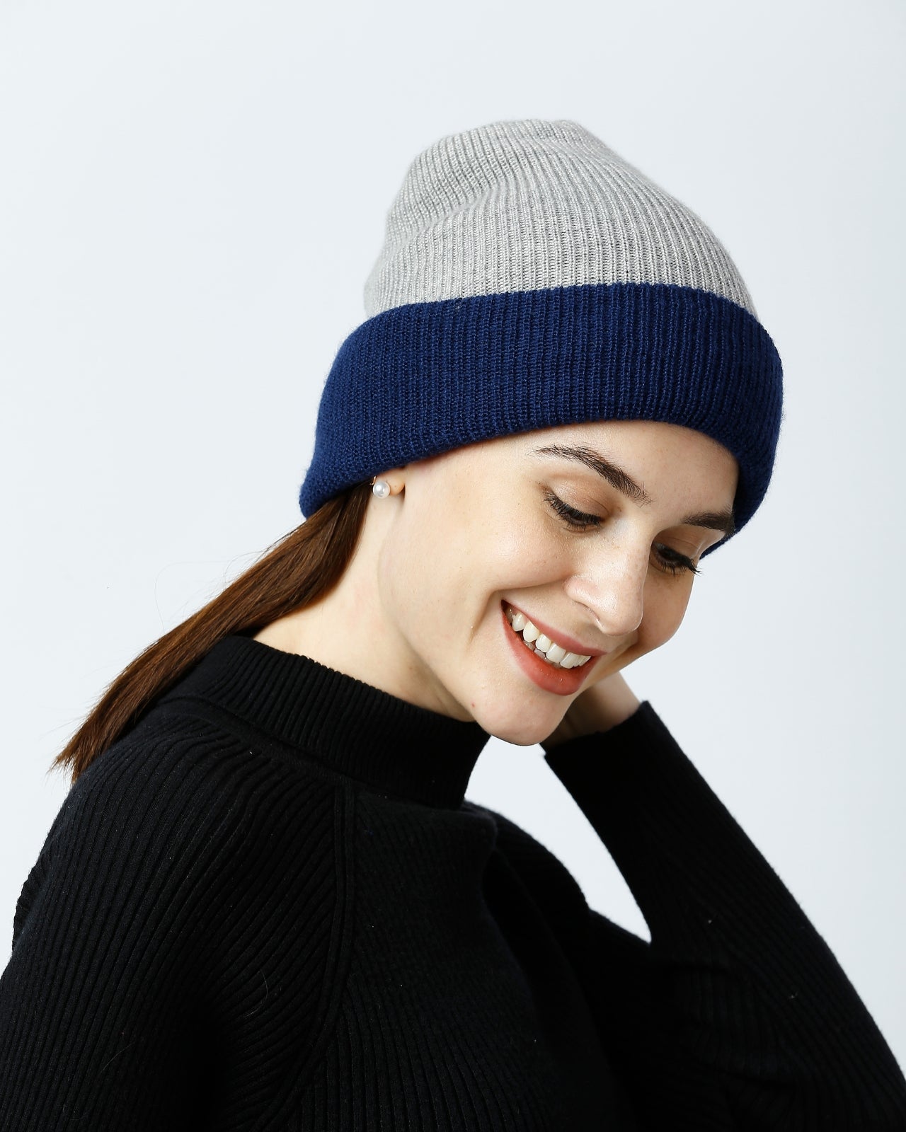 Soft, Stylish & Double Layered wool beanie. It’s a women’s merino wool reversible beanie that’s adjustable in length. It has a stylish metal applique/tag at the side. This double-layer merino beanie for women is not only a warm yet breathable reversible beanie but also an incredibly travel-friendly reversible beanie. Now look stylish by pairing it with Kosha’s Black Solid Puffer Jacket along with denim. With its two-tone design, it's the perfect stylish two-tone merino beanie for women to complement any outfit while keeping you cozy.
