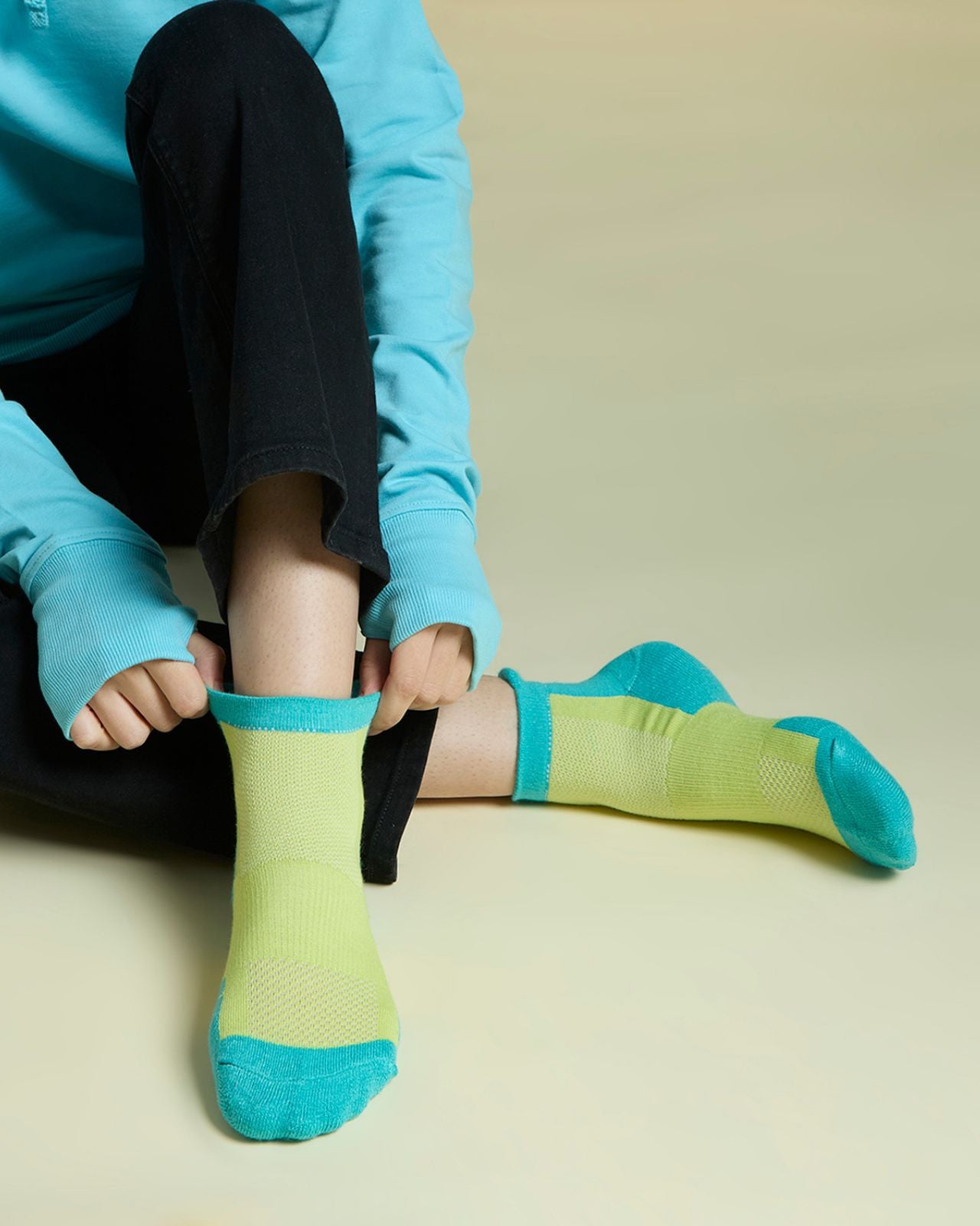 Say goodbye to blisters, cramped toes, and unwanted odors with our women's wool blend full-length technical socks. Designed for comfort and performance, they feature cushioned pressure zones at the heel, breathable mesh panels around the toes, arch support, and a soft ribbed ankle to prevent slipping. Ideal for winter travel and everyday wear, these socks deliver warmth, support, and all-day freshness.