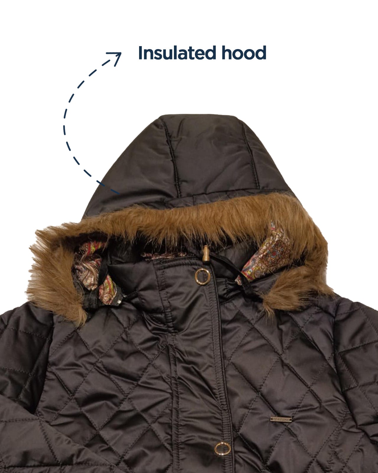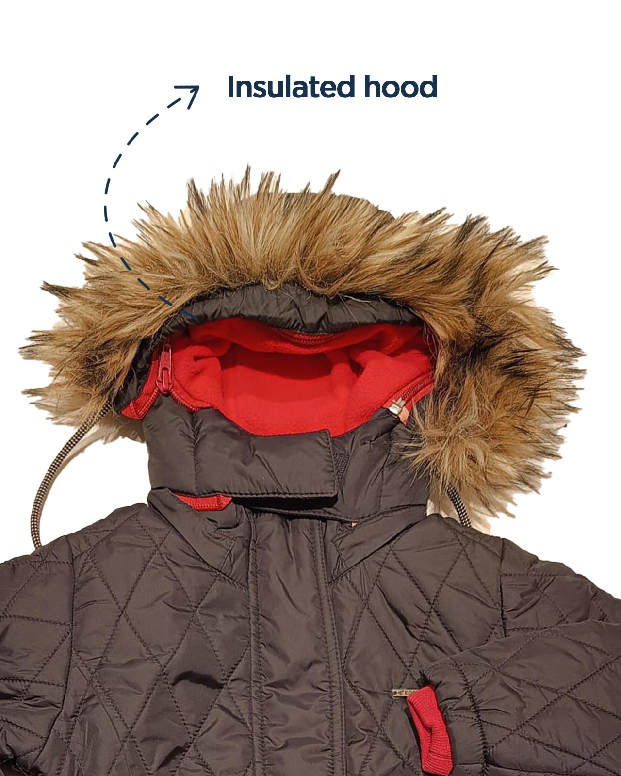 • Hood with a draw string to keep ears and head protected from freezing winds