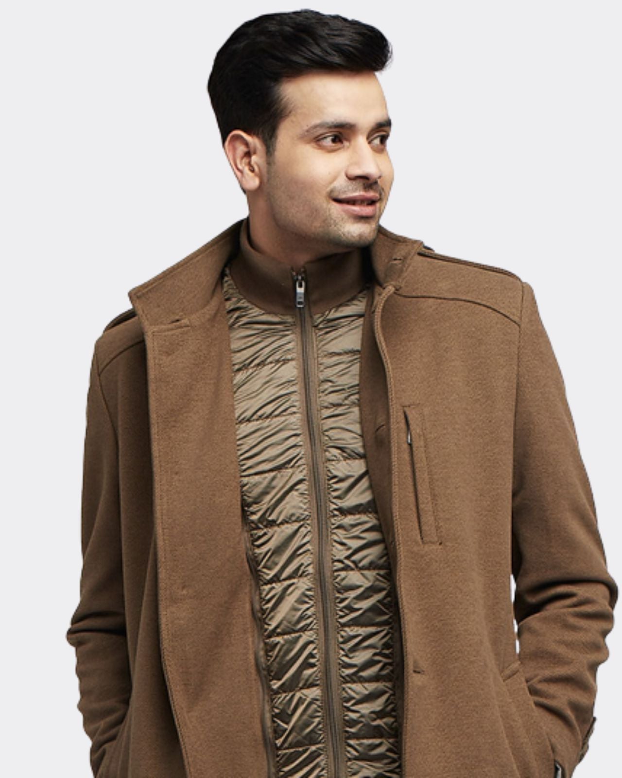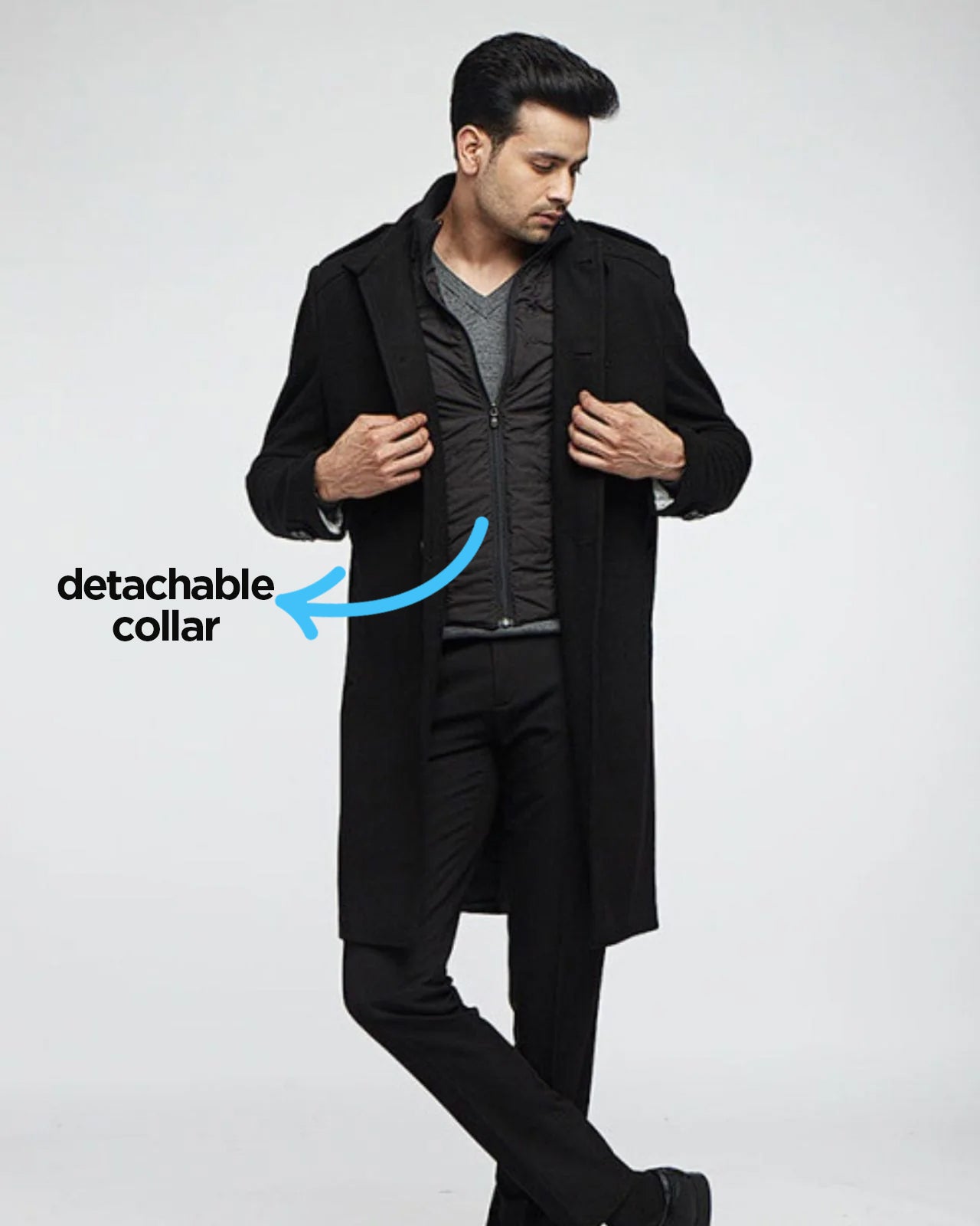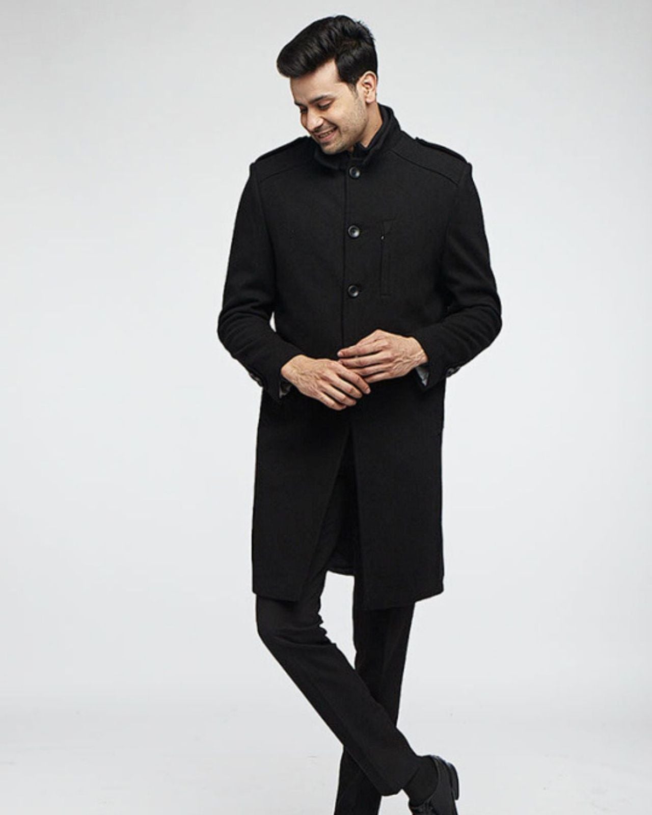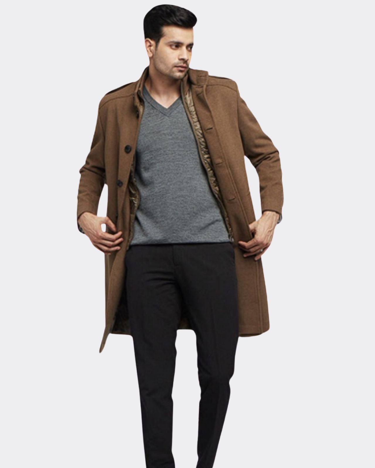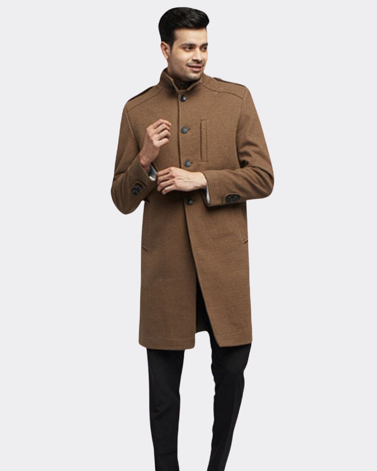 Upgrade Your Winter Wardrobe with Our Formal Merino Wool Coat for Men. Make a statement with our classy Formal Merino Wool Coat. Crafted from 100% merino wool, this coat offers luxurious warmth and comfort, perfect for both winter holidays and business trips. Stay warm and cozy with the detachable polyfill insulation, ensuring comfort in changing temperatures. Featuring one chest pocket and two side pockets, this coat combines style with functionality, keeping your essentials within easy reach. The stand collar adds a touch of elegance, making this coat suitable for both formal and casual occasions.