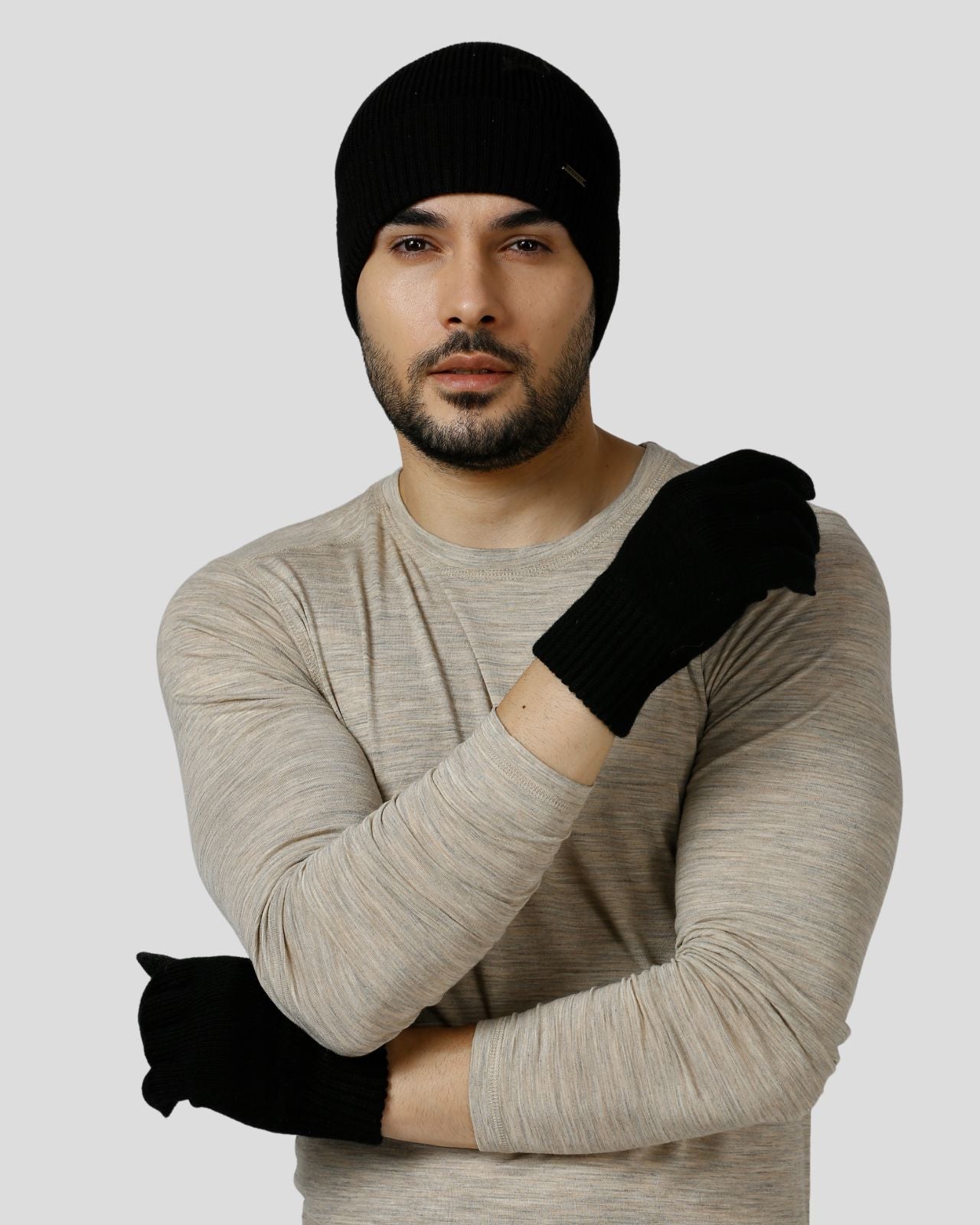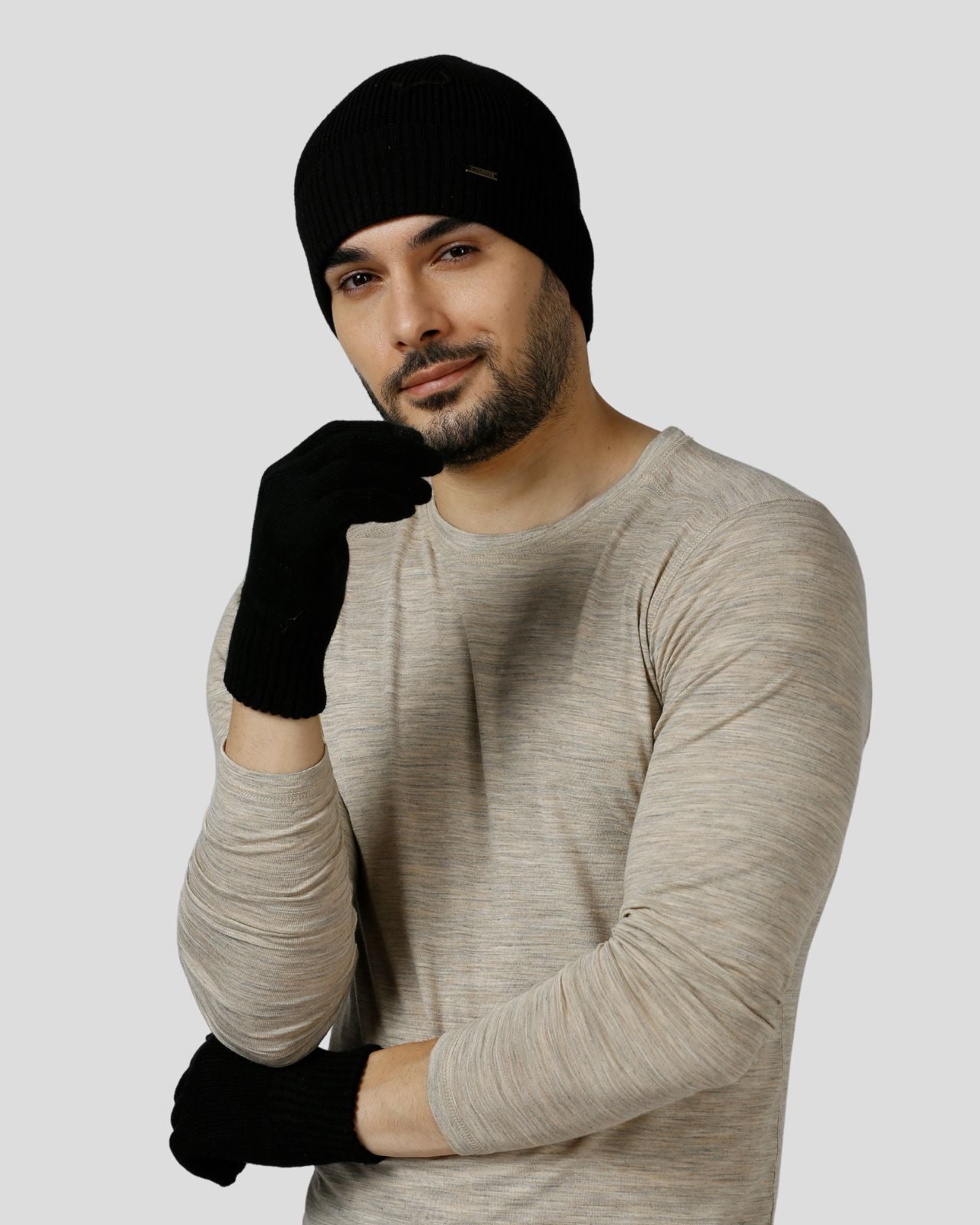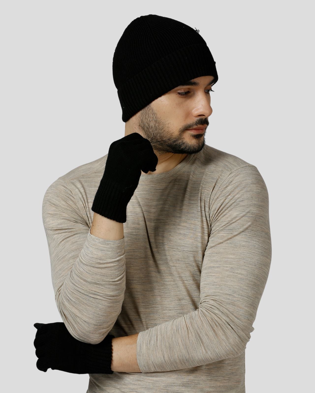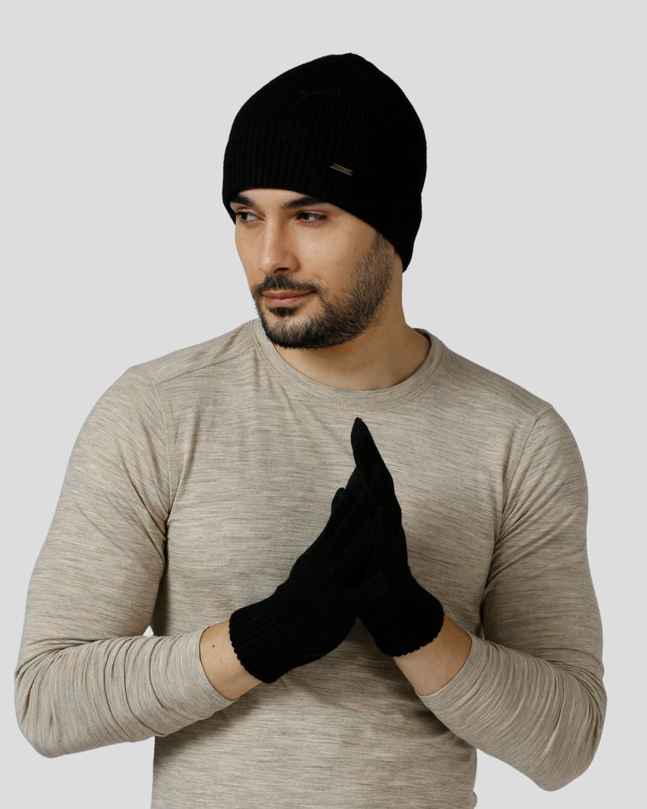 The merino wool gloves are equally soft and functional, featuring touch-enabled tips on the index finger and thumb for easy phone use without exposing your hands to the cold. These gloves combine practicality with luxury, offering warmth and protection while keeping you connected. Together, this combo ensures you stay cozy, stylish, and functional all winter long, whether you're out exploring the city or enjoying outdoor adventures.