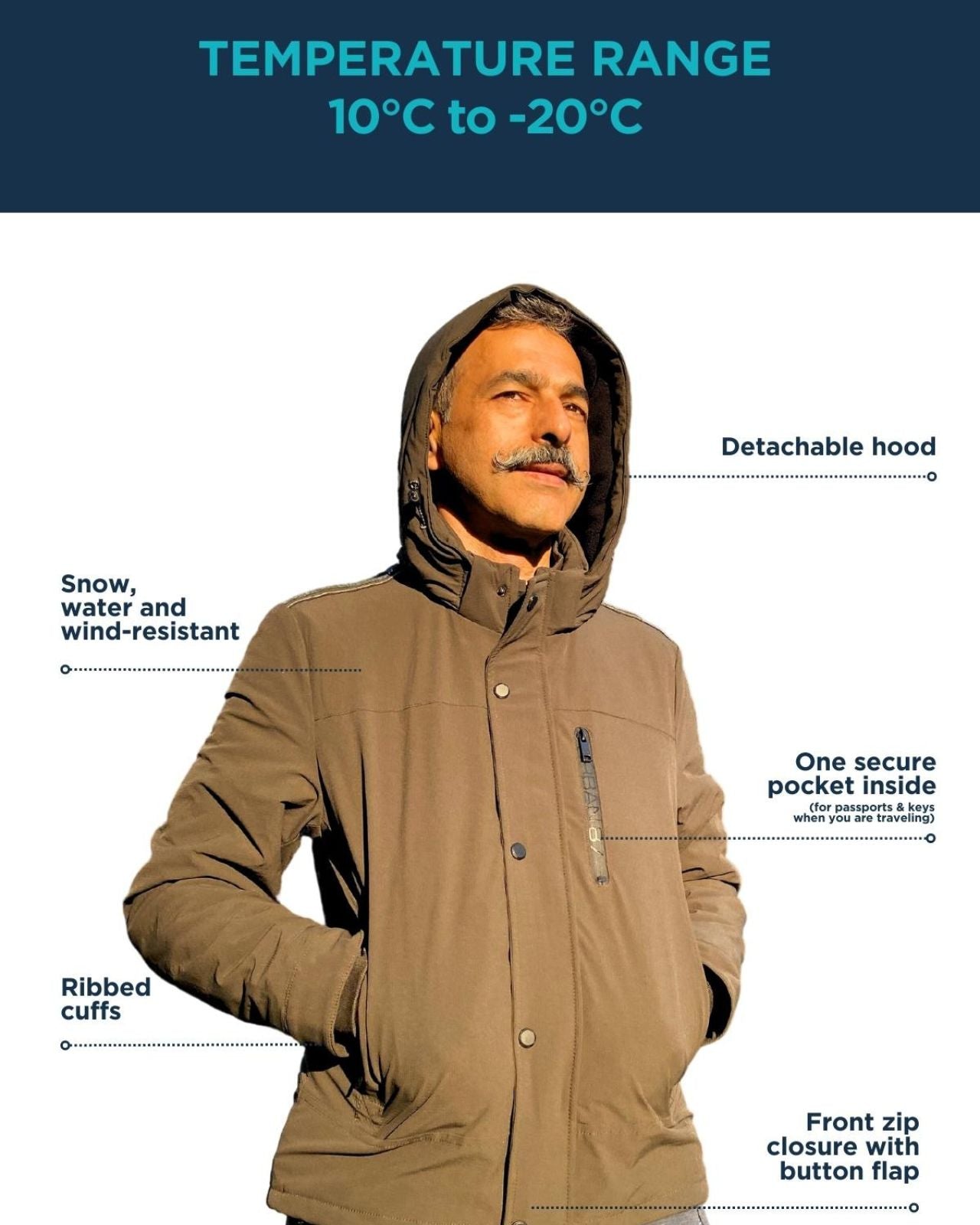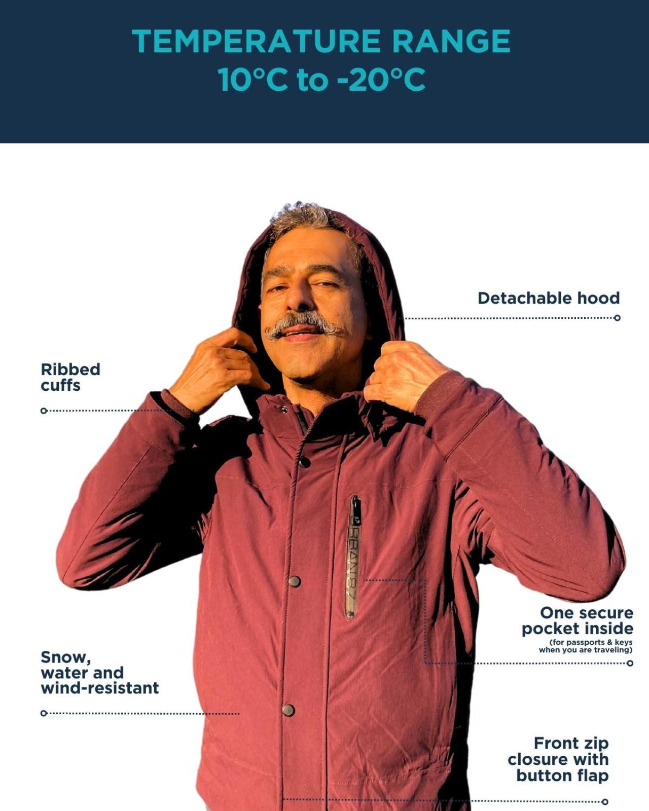 Versatile comfort and warmth in temperatures ranging from 10°C to 5°C, When layered with thermals, sweaters, or hoodies, this jacket ensures enhanced warmth, making it suitable for colder temperatures from 5°C to -20°C.