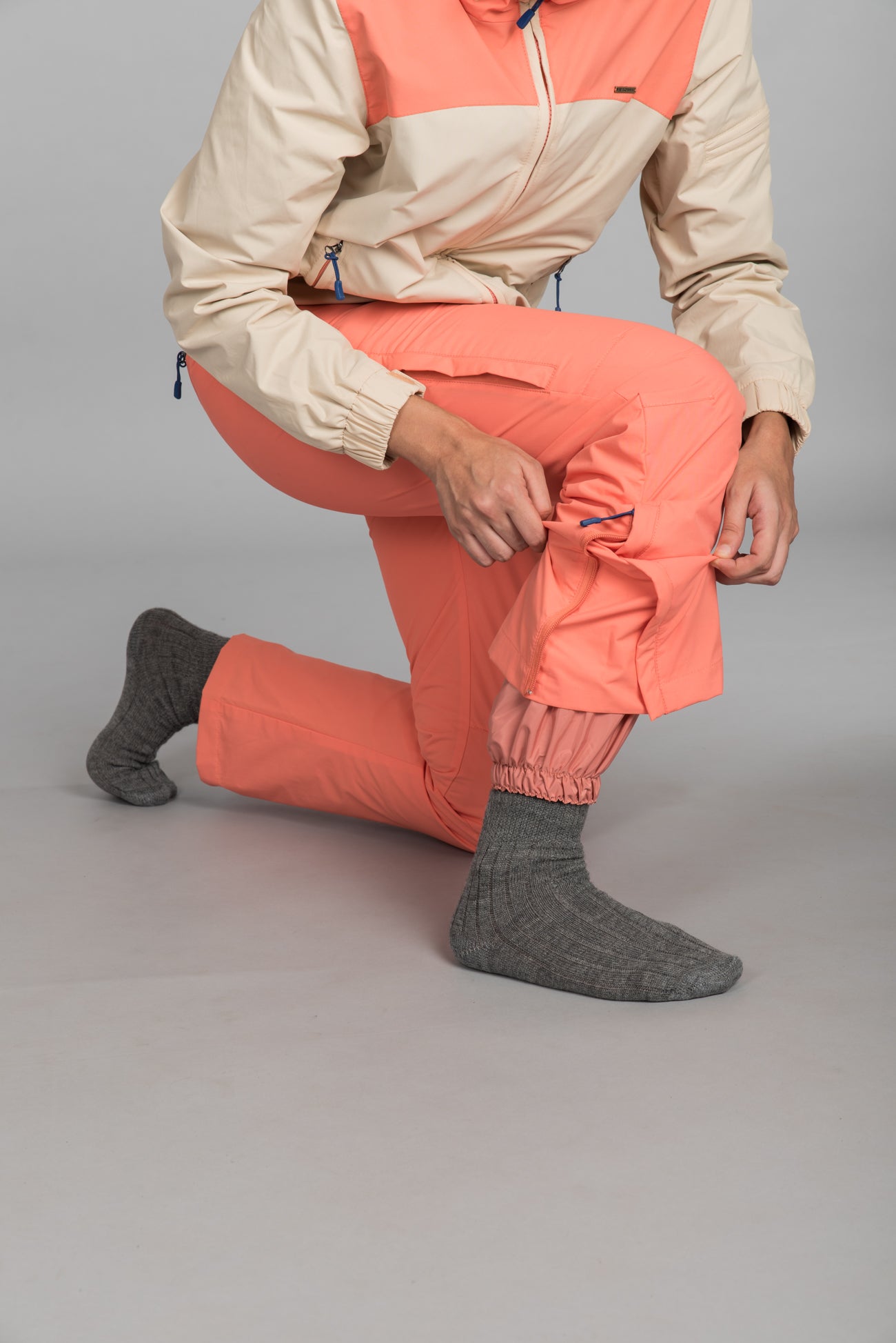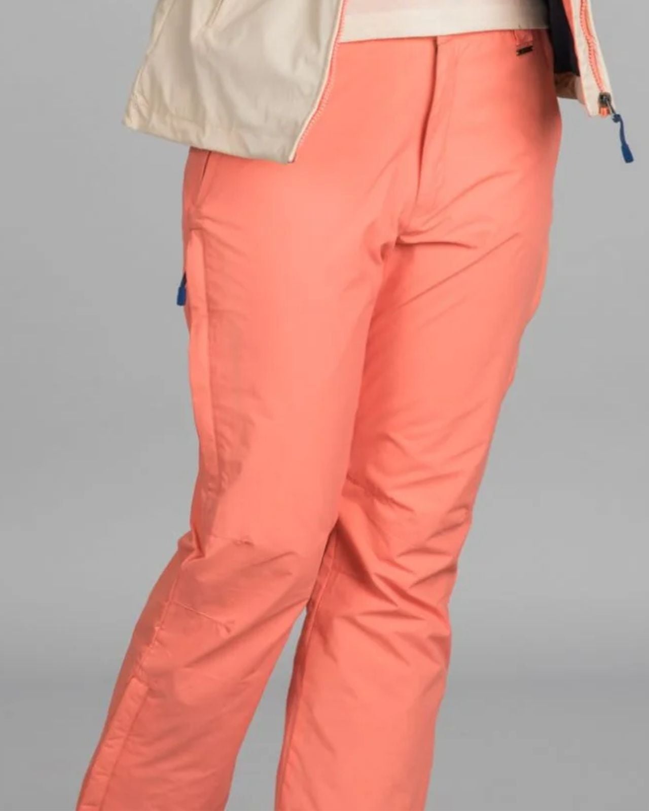 Conquer the slopes with Kosha's Hard Shell Peach Waterproof Ski Pants for Women. Crafted from 100% Nylon with a PU Breathable coating, these pants offer unconstrained movement and superior protection. Featuring thigh vents for enhanced breathability and gaiters to keep snow out, these pants are your ultimate companion for an exhilarating and comfortable skiing experience.