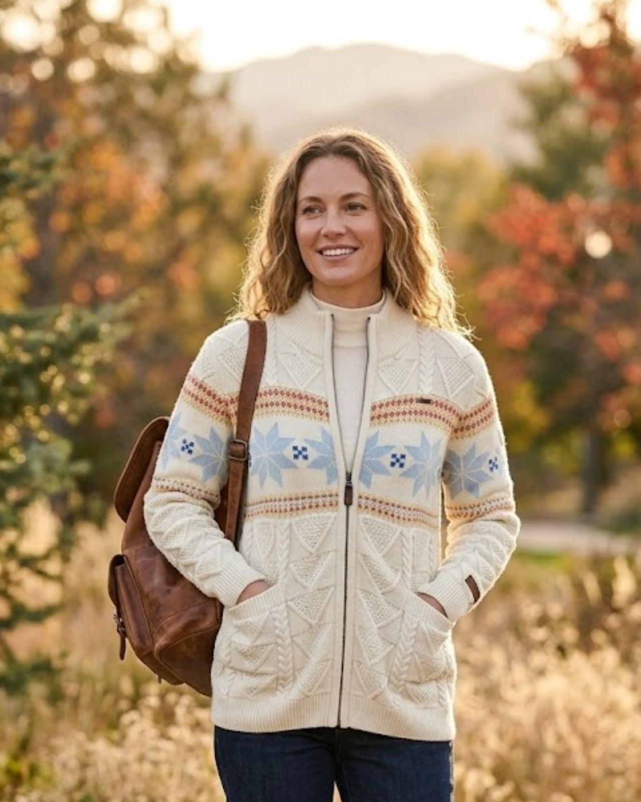 Women’s Snowflake Design Full-Zip Cable Knit Sweater