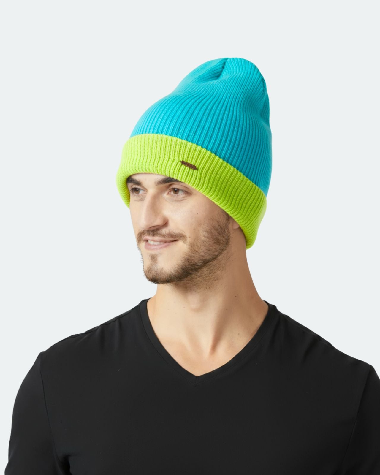 This cozy wool blend beanie is fully reversible, giving you two looks in one. Designed with an adjustable length for the ideal fit, it’s finished with a subtle metal applique/tag for a touch of style. A versatile essential for staying warm while looking sharp.