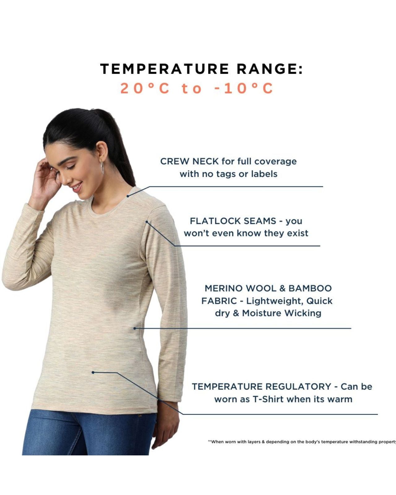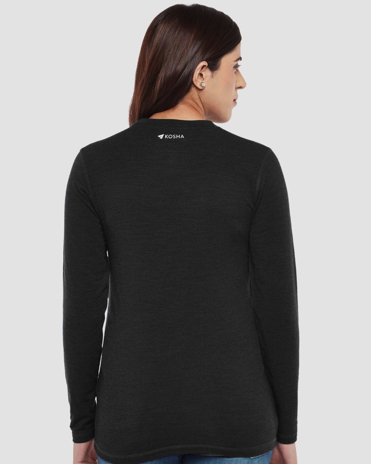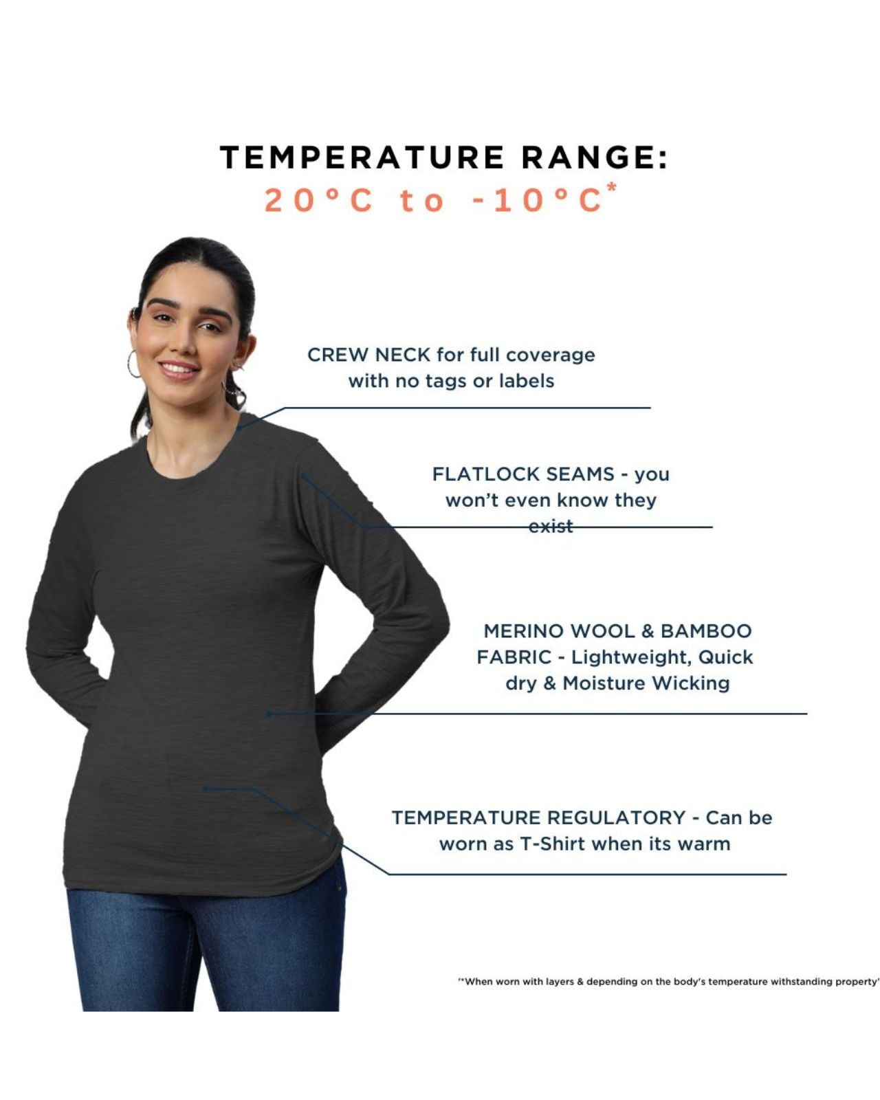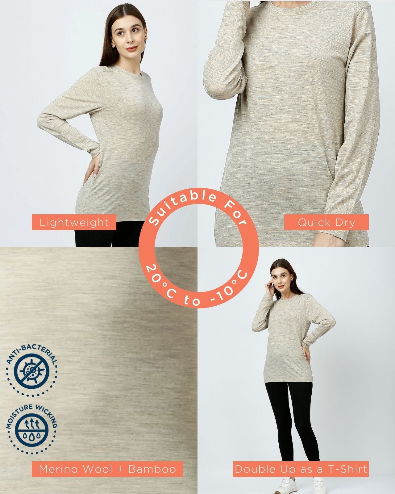 Soft on your skin and lightweight yet warm, this women’s full sleeves thermal merino bamboo top blends comfort with performance. A soft merino bamboo long sleeve tee that’s moisture-wicking, breathable, and temperature-regulating, perfect as a women’s merino wool bamboo thermal top for workouts, travel, or everyday layering.